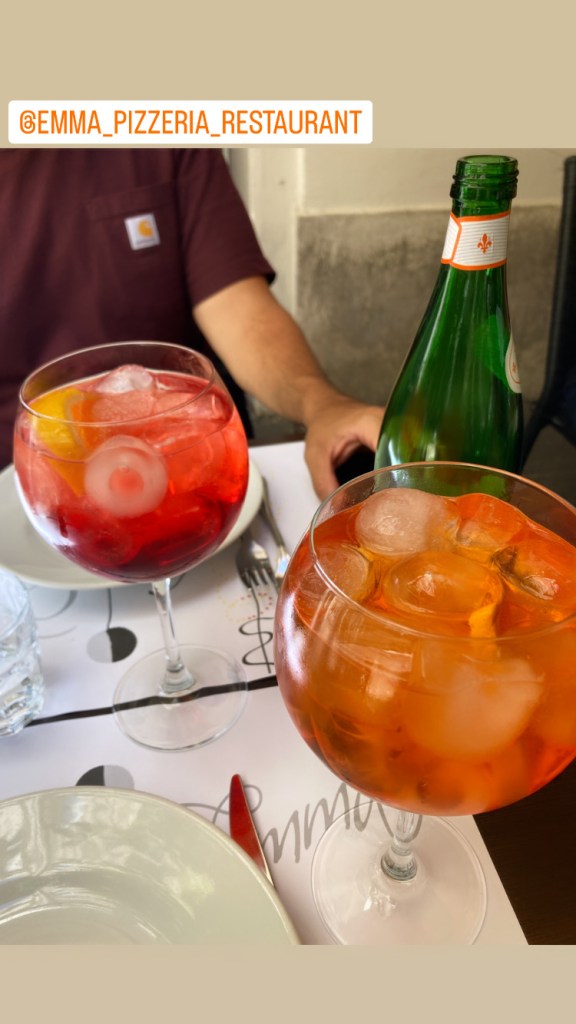 - Stumbled upon this place for our first lunch. Huge spritzes, delicious pizza. 7/10